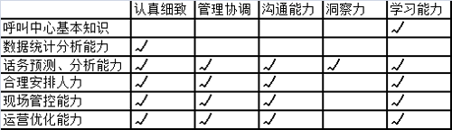 綜上所述,排班師的個人能力對呼叫中心的運營有著至關(guān)重要的意義。那么,為了達到這一目標(biāo),對排班師有什么樣的能力要求?在實際工作中如何應(yīng)用這些能力?在此,結(jié)合筆者在運營管理及排班項目實施中的一些體會,對排班師需具備的能力進行分析。
