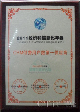 作為全球企業(yè)管理軟件領(lǐng)跑者,八百客參加了此次會(huì)議,并就IT業(yè)戰(zhàn)略性發(fā)展、工業(yè)轉(zhuǎn)型升級(jí)等問題和與會(huì)企業(yè)家進(jìn)行了深入探討,集中、深刻闡釋產(chǎn)業(yè)精髓,洞悉和把握未來發(fā)展方向,尋求最佳的信息化成長(zhǎng)模式。年會(huì)期間的招待晚宴穿插各類年度大獎(jiǎng)的頒獎(jiǎng)典禮,讓與會(huì)的政界、學(xué)界、商界等各路貴賓充分交流信息,建立友誼,為達(dá)成長(zhǎng)期合作奠定良好的基礎(chǔ)。基于八百客在國(guó)內(nèi)CRM領(lǐng)域的優(yōu)秀表現(xiàn),本次年會(huì)特別授予了八百客“CRM付費(fèi)用戶數(shù)第一供應(yīng)商”的大獎(jiǎng)。