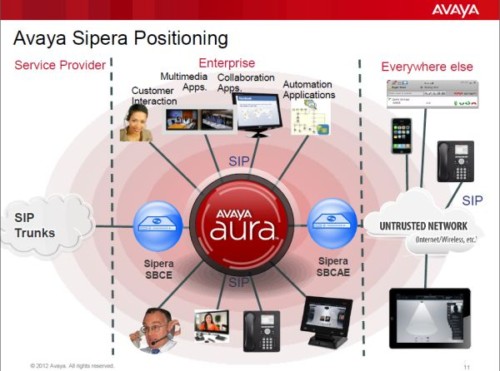 收購Sipera,Avaya獲得了適用于會(huì)話啟動(dòng)協(xié)議(SIP)中繼的企業(yè)級會(huì)話邊界控制技術(shù),從而增強(qiáng)Avaya統(tǒng)一通信產(chǎn)品線的實(shí)力,并為客戶和渠道合作伙伴提供更大的靈活性,幫助他們實(shí)現(xiàn)各種安全功能進(jìn)而創(chuàng)造商業(yè)價(jià)值。Sipera開放的、基于標(biāo)準(zhǔn)的解決方案適用于Avaya和非Avaya網(wǎng)絡(luò)。Sipera解決方案與Avaya Aura整合后,將能為客戶提供安全的VoIP、SIP中繼、視頻會(huì)議、基于云的通信、即時(shí)通信以及協(xié)作工具,使客戶能隨時(shí)隨地為使用企業(yè)級或消費(fèi)類設(shè)備的員工提供服務(wù)。
