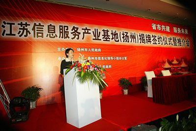 “腰纏十萬貫,騎鶴下?lián)P州”——在“煙花三月”最美的季節(jié),在“長江三角洲經(jīng)濟(jì)帶”最具活力的地區(qū),在榮獲“聯(lián)合國人居獎”的揚(yáng)州,4月21、22日“江蘇信息服務(wù)產(chǎn)業(yè)基地(揚(yáng)州)揭牌簽約推介暨揚(yáng)州呼叫產(chǎn)業(yè)基地建設(shè)運(yùn)營管理論壇”隆重舉行,揚(yáng)州市市長、江蘇省信息產(chǎn)業(yè)廳廳長、揚(yáng)州人大等四套班子以及來自北京、上海及江蘇省內(nèi)的各信息產(chǎn)業(yè)的相關(guān)企業(yè)高管及業(yè)內(nèi)知名專家,帶著投資,帶著知識,帶著對信息揚(yáng)州規(guī)劃的建議,齊聚揚(yáng)州,共商大計(jì)。