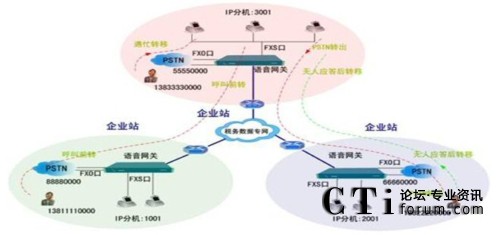 - 之間通話采用CNG系列網(wǎng)關(guān)免費(fèi)通話,通過VoIP撥打PSTN低話費(fèi),節(jié)省成本。