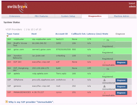 圖2中綠色表示正常,紅色表示出現(xiàn)問題,白色表示從沒有接通過。如果你按診斷(Diagnose),系統(tǒng)便會通過自動測試,告訴你問題出自那一段落。如果需要對每一個的詳細解析,可以按底部Why這個標(biāo)題,找尋答案。類似的終端、話機等配置、硬件診斷等,也有非常明撩的界面與解決問題的辦法。