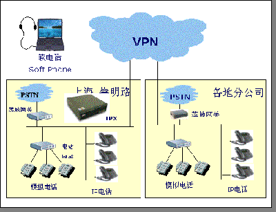 有了這個 IP 電話網(wǎng)絡(luò),出差員工可以方便地使用軟電話通過網(wǎng)絡(luò)與公司免費通訊,直接可以通過公司的 IP 電話網(wǎng),撥打當?shù)仉娫,實行長話變市話,降低了出差通訊成本。