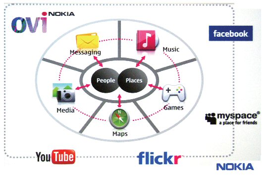 諾基亞的鮮明主張是:移動互聯(lián)網(wǎng)的發(fā)展與推進,必須最大限度地開發(fā)融合“人”與“地”的移動應用,突顯互聯(lián)網(wǎng)所沒有的一些特性,而絕不能簡單地將互聯(lián)網(wǎng)的應用照搬到手機上。