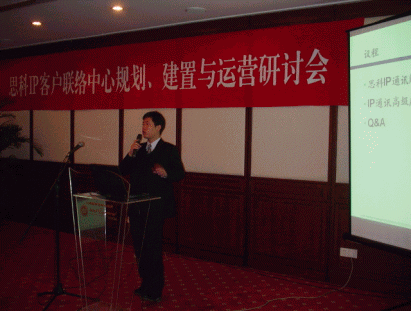 2點(diǎn)整,主持人宣布會(huì)議正式開(kāi)始。首先是正音科技公司執(zhí)行副總秦裕農(nóng)先生致開(kāi)幕詞。秦先生從2000多年前的周幽王烽火戲諸侯娓娓道來(lái),一直講到IP技術(shù)在音頻、視頻上的應(yīng)用,為大家生動(dòng)形象地描述了通訊技術(shù)發(fā)展的歷程。在演講的最后,秦先生指出了一個(gè)客戶(hù)聯(lián)絡(luò)中心所應(yīng)該具備的特性:"在這個(gè)客戶(hù)聯(lián)絡(luò)中心里,客戶(hù)應(yīng)該能夠隨時(shí)隨地的通過(guò)電話、傳真、郵件、網(wǎng)絡(luò)電話、文字聊天、web協(xié)同等各種各樣的方式,第一時(shí)間找到企業(yè),解決他們的問(wèn)題;在這個(gè)客戶(hù)聯(lián)絡(luò)中心里,企業(yè)能夠廉價(jià)地把分布于全國(guó)各地的服務(wù)資源聯(lián)系起來(lái),進(jìn)行統(tǒng)籌管理,統(tǒng)一為客戶(hù)提供服務(wù);在這個(gè)客戶(hù)聯(lián)絡(luò)中心里,企業(yè)可以隨時(shí)把一個(gè)空閑的客戶(hù)服務(wù)人員調(diào)整為電話銷(xiāo)售人員,而不用去修改復(fù)雜系統(tǒng)設(shè)置;在這個(gè)客戶(hù)聯(lián)絡(luò)中心里,任何一個(gè)可以接入互聯(lián)網(wǎng)的員工,不管他身在地球的哪一個(gè)角落,都可以隨時(shí)隨地的接入系統(tǒng),變成一個(gè)坐席,為客戶(hù)提供專(zhuān)業(yè)的服務(wù)。"秦先生描述的這個(gè)完美的客戶(hù)聯(lián)絡(luò)中心立即博得了陣陣掌聲,同時(shí)也引起了與會(huì)者的極大興趣,如何才能實(shí)現(xiàn)這個(gè)猶如夢(mèng)中的呼叫中心呢?"相信通過(guò)今天的研討會(huì),各位會(huì)得到了一個(gè)滿意的答案",秦先生最后自信的向大家保證。
