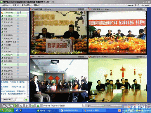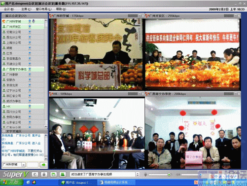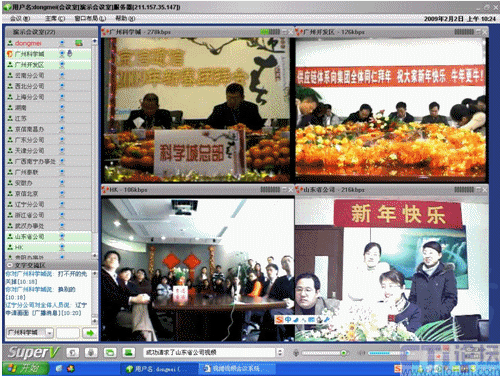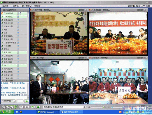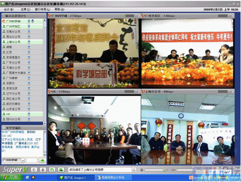 春節(jié)是中華民族的傳統的節(jié)日,尤其是跨國企業(yè)集團,身在海外的游子們,這一刻多么期待與在國內的親人、朋友、以及同事網絡“面對面”的過春節(jié);因此,一些企業(yè)用視維視頻會議舉辦了別開生面的視頻拜年會。其中京信通信公司視頻年會尤為精彩,廣州科學城的主會場、廣州開發(fā)區(qū)、香港、北京、上海、西北分公司、武漢等20多個分公司通過視維視頻會議互拜大年,通過網絡視頻,遠隔千里一樣可以“面對面”的送上新春祝福。如下圖: