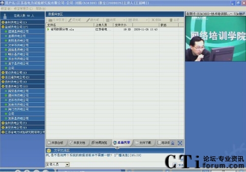 CTI論壇(ctiforum)12月03日消息(記者 張塵):11月26日下午,江蘇省電力公司勞資部門通過網(wǎng)絡(luò)遠程方式對下屬公司員工進行培訓(xùn),這也是該部門第一次采用網(wǎng)絡(luò)培訓(xùn),泰州、徐州、連云港等市、縣人員遠程參加了培訓(xùn)。會議主持人說:“今天首次嘗試使用網(wǎng)絡(luò)遠程培訓(xùn)方式,感覺效果不錯,以后的統(tǒng)計、人事、勞動組織等工作將更多的采用這種網(wǎng)絡(luò)培訓(xùn),希望參會人員能逐漸適應(yīng)網(wǎng)絡(luò)培訓(xùn)方式!迸嘤(xùn)結(jié)束后,南通市啟東縣的工作人員說:“以后的培訓(xùn)建議都采用網(wǎng)絡(luò)方式,不然在路上來回時間太長”。