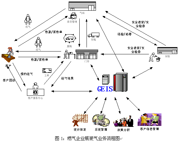GEIS燃氣運營管理信息系統(tǒng)的應用是企業(yè)的長期發(fā)展的驅動力,它是一套以客戶服務接觸中心為龍頭、以運營生產(chǎn)流程管理為龍身、以經(jīng)營分析為龍尾的閉環(huán)信息處理系統(tǒng)。它由客戶服務中心子系統(tǒng)、門市業(yè)務子系統(tǒng)、氣站管理子系統(tǒng)、安全搶修平臺和管理與集成模塊組成。實踐的事實告訴我們,它起到保持客戶忠誠度、提升企業(yè)品牌影響力、提高業(yè)務運作效率、加快業(yè)務經(jīng)營決策和促進企業(yè)持續(xù)發(fā)展的作用。