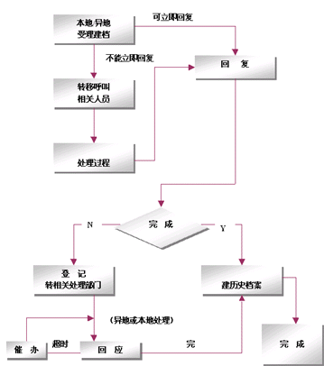整個網(wǎng)絡(luò)采用只在集中受理中心設(shè)立一個集中監(jiān)控系統(tǒng),負(fù)責(zé)監(jiān)控全網(wǎng)的客戶業(yè)務(wù)、服務(wù)、技術(shù)支持和投訴等等業(yè)務(wù),該系統(tǒng)基于事件管理的思想,提供包括創(chuàng)建、解決、分配、反饋、跟蹤、回訪等節(jié)點在內(nèi)的閉環(huán)處理模式。例如系統(tǒng)可以根據(jù)客戶反映問題的時間以及緊急程度,按照系統(tǒng)約定的處理時限對處理過程實時跟蹤和記錄,當(dāng)處理超時時回自動給出報警信息,提示相關(guān)的操作人員及主管人員。同時根據(jù)約定還可以將受理的問題按照約定的方式自動發(fā)送到相關(guān)的處理部門,由處理部門進(jìn)行處理。