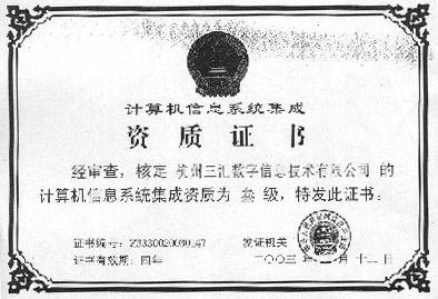 三匯公司獲得計(jì)算機(jī)信息系統(tǒng)集成資質(zhì)證書(shū)!