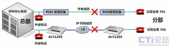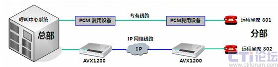 傲威通信采用AVX1200作為中心端和遠(yuǎn)程坐席端的復(fù)接設(shè)備,采用Hotline形式,只要遠(yuǎn)程坐席員摘機(jī),中心端的呼叫中心交換機(jī)立刻接到摘機(jī)指令。當(dāng)有呼叫到來(lái),遠(yuǎn)程坐席可像本地坐席一樣接聽(tīng)電話(huà),無(wú)任何差異。