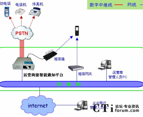 運營商管理人員通過局域網(wǎng)或者internet網(wǎng)絡訪問智能通知平臺,管理和維護企業(yè)用戶的帳戶信息,并為企業(yè)用戶提供個性化功能配置。