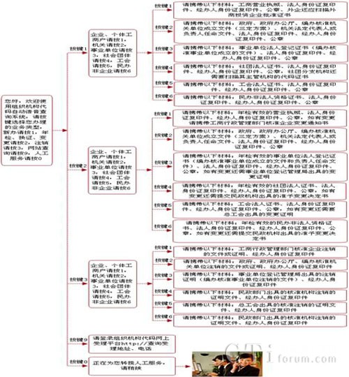 采用能夠穩(wěn)定工作、安全可靠、操作方便、可擴充性強、設(shè)備造價低廉的語音系統(tǒng)設(shè)備結(jié)合組織機構(gòu)代碼工作實際現(xiàn)狀,將事先錄制好的辦證信息通過短信及電話告知客戶,提醒他們及時來辦理相關(guān)業(yè)務,成為保證代碼數(shù)據(jù)及時準確的重要技術(shù)手段。