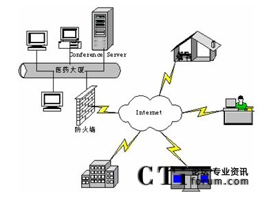 視頻會(huì)議服務(wù)器設(shè)置在上?偛浚ㄟ^(guò)電信的6M帶寬接入互聯(lián)網(wǎng),并配備有廣域網(wǎng)靜態(tài)IP地址。下屬生產(chǎn)基地和分支機(jī)構(gòu)通過(guò)電信ADSL接入和光纖接入等方式接入互聯(lián)網(wǎng)。這些點(diǎn)能夠?qū)崿F(xiàn)網(wǎng)絡(luò)視頻會(huì)議通訊,進(jìn)行音頻、視頻和數(shù)據(jù)的多方溝通。