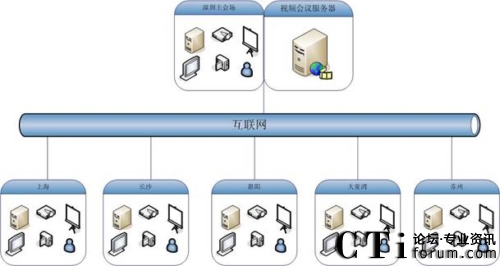 如圖,深圳南山地產(chǎn)視頻會議系統(tǒng)應(yīng)用規(guī)模為6個(gè)點(diǎn),包括深圳、上海、長沙、惠陽、大亞灣、蘇州。服務(wù)器部署在深圳用來保證香港和內(nèi)地的鏈接效果,服務(wù)器出口帶寬為3M共享,各分會場通過互聯(lián)網(wǎng)訪問服務(wù)器。在這個(gè)網(wǎng)絡(luò)平臺上,紅杉樹網(wǎng)絡(luò)會議所提供的高質(zhì)量音視頻圖像、方便易用的文檔、文件共享數(shù)據(jù)功能,使得南山地產(chǎn)能夠在這個(gè)平臺上進(jìn)行從桌面討論到會議室正式會議等各種規(guī)模的應(yīng)用。在這個(gè)平臺上,除了進(jìn)行日常例會、業(yè)務(wù)交流等常見的應(yīng)用之外,業(yè)務(wù)培訓(xùn)、異地招聘等也是經(jīng)常進(jìn)行的內(nèi)容。業(yè)務(wù)人員利用數(shù)據(jù)功能,節(jié)約了以前培訓(xùn)所花費(fèi)的大量精力和時(shí)間,為新項(xiàng)目迅速占領(lǐng)市場掌握了主動。