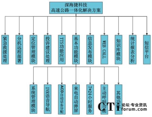 深海捷科技針對(duì)高速公路呼叫中心的需求特點(diǎn),并結(jié)合長(zhǎng)遠(yuǎn)發(fā)展需求,通過(guò)統(tǒng)一的服務(wù)號(hào)碼接入,實(shí)現(xiàn)除呼叫中心基礎(chǔ)功能外的緊急救援處理模塊、分機(jī)遠(yuǎn)程部署、定位管理模塊、投訴建議處理流程、TTS應(yīng)用模塊、實(shí)時(shí)信息發(fā)布模塊、WEB