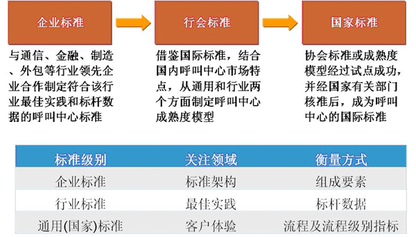 結(jié)合了以上調(diào)研考察的豐碩成果以及共識,呼叫中心標(biāo)準(zhǔn)指導(dǎo)委員會和客戶世界研究院(CCMWorld Group)負(fù)責(zé)起草,聯(lián)合各行業(yè)具有代表性的呼叫中心運(yùn)營機(jī)構(gòu)(包括外包呼叫中心)和專業(yè)呼叫中心承載園區(qū),正式發(fā)起中國呼叫中心領(lǐng)域國家級行業(yè)性推薦標(biāo)準(zhǔn)和“立足中國、定位亞太、接軌世界”的國際標(biāo)準(zhǔn),并將其命名為“呼叫中心能力成熟度模型CC-CMM”