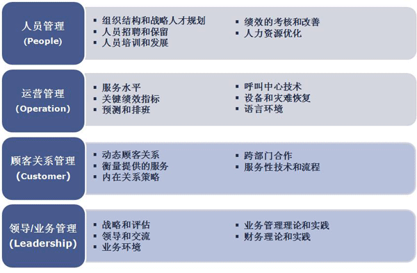 呼叫中心中高層管理人員認(rèn)證是為呼叫中心行業(yè)建立自己的“黃埔軍校”。通過一系列的培訓(xùn),包含人員管理,運(yùn)營管理,顧客關(guān)系管理和領(lǐng)導(dǎo)/業(yè)務(wù)管理,來為呼叫中心行業(yè)培養(yǎng)合適的中高層管理人員。
