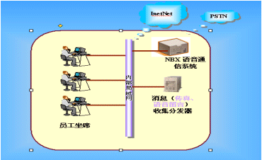 3Com NBX統(tǒng)一消息系統(tǒng)將不同的信息技術(shù)和網(wǎng)絡(luò)結(jié)合起來(lái),提供了一個(gè)語(yǔ)音郵件獲取接口,利用該接口,可以將話機(jī)的語(yǔ)音留言、傳真等轉(zhuǎn)發(fā)到用戶的辦公(或個(gè)人)電子信箱中,而使用者只需通過(guò)單一的終端設(shè)備,比如PC或電話,就能夠在任何時(shí)間、任何地點(diǎn)接收和獲取不同來(lái)源的信息(如:聲音、傳真和電子郵件)。