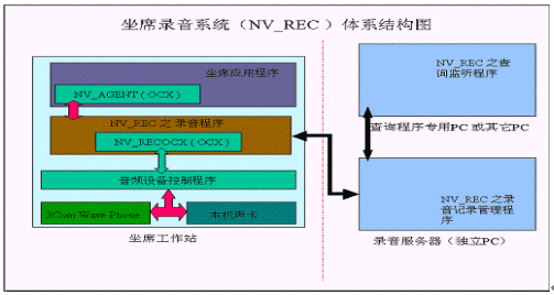 NV-REC 專用錄音系統(tǒng)與傳統(tǒng)的使用錄音板卡對坐席(電話)并線錄音的方式截然不同,由于3Com IPCC的所有坐席服務(wù)均是通過安裝在坐席終端上的軟件電話,通過聲卡、耳機(jī)來實現(xiàn)與客戶的電話溝通的。我們是直接監(jiān)測軟件電話,從聲卡設(shè)備通道中直接形成實時語音通話的標(biāo)準(zhǔn)WAV文件,從而完成對坐席的全程錄音功能。