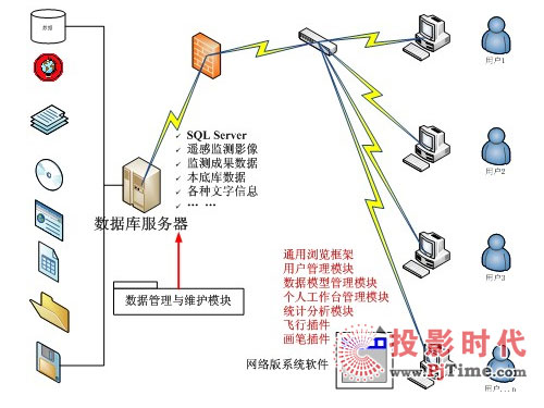 系統的數據統一部署在規(guī)劃院局域網內的一臺“數據庫服務器”上,所有的應用采用Client/Server的模式,客戶端不部署任何數據,用戶在需要連接數據的時候統一連接到服務器上獲取數據。
