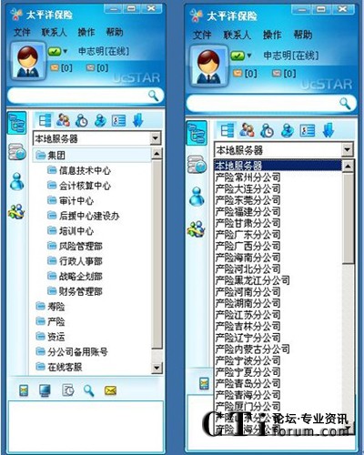 覆蓋全國的太平洋保險不僅在各省的城市有分公司,其分支機構也遍布全國各個區(qū)縣。如何將各項政策快速有效地傳達給各個分支機構,成為保險公司信息總部一直探索的一條“路”。如何讓基層機構也能參與日常的各項大大小小的會議,如何讓分布在全國的企業(yè)員工接受良好的培訓?傳統(tǒng)的通訊手段似乎難以滿足需要。中國太平洋保險(集團)股份有限公司是全國性股份制商業(yè)保險公司,成立于1991年4月,總部設在上海。大部分分公司已經自行使用很多即時通訊產品,但由于系統(tǒng)分散,各分公司管理能力存在差異,造成目前CPIC內部即時通訊軟件使用相對比較混亂,部分員工還存在使用MSN、QQ的現象,這種現象已經給公司安全生產帶來了一定的隱患。為此,太平洋保險集團的應用理應跳出即時通信的應用,選擇一個擴展性、控制性、可管性強大的通信平臺。