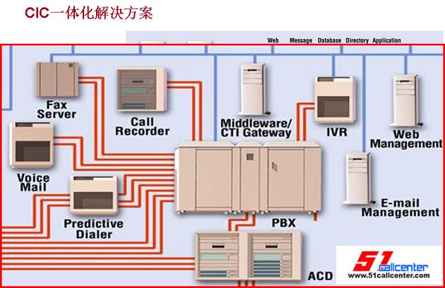 我給我們的產(chǎn)品做一個定位,就是一體化解決方案的呼叫中心。傳統(tǒng)的基于PBX的呼叫中心解決方案,我們把中間的這一塊放大,有傳真系統(tǒng)、語音信箱、IVR、Recorder記錄系統(tǒng)、還有預(yù)測外呼系統(tǒng)。每個系統(tǒng),都是獨立的,而且需要自己的服務(wù)器、自己的應(yīng)用軟件以及業(yè)務(wù)模式。我們的CIC解決方案,把這些所有的功能全部濃縮在一個服務(wù)器之內(nèi),也可以把它濃縮在一個Webex內(nèi),一個盒子之內(nèi),這個盒子就是我們的CIC。