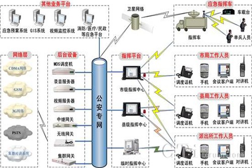 一方面,由于公安系統(tǒng)承擔(dān)著打擊違法分子、維護(hù)社會穩(wěn)定的責(zé)任。因此就要求公安指揮人員能夠在出現(xiàn)緊急狀況時(shí),能夠在第一時(shí)間安排公安人員前往處理,并且能夠在處理的過程中實(shí)時(shí)的指揮中心進(jìn)行溝通,同時(shí)為了保證公安系統(tǒng)工作的高效性,要求能夠?qū)崿F(xiàn)市指揮中心直接和分布在全市、縣區(qū)分局、派出所、巡邏人員進(jìn)行直接的通信,由指揮中心根據(jù)事態(tài)的發(fā)展,統(tǒng)一調(diào)度各方面的資源來配合處理,爭取在最短的時(shí)間解決突發(fā)事件,防止事態(tài)的發(fā)展。
