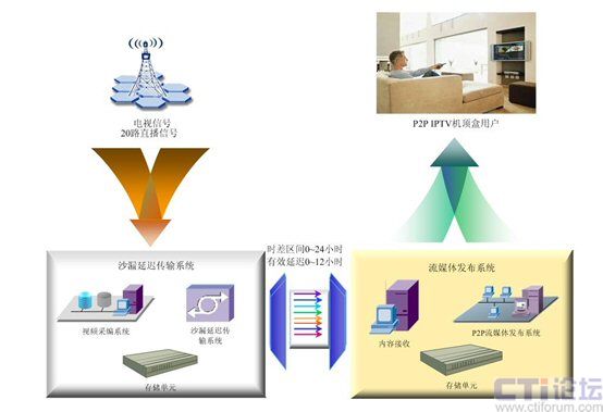 - 延遲時(shí)間自由設(shè)置。根據(jù)國家之間時(shí)差的不同,傳輸延遲時(shí)間可以設(shè)置從3分鐘到24小時(shí)的任意時(shí)長(zhǎng),真正實(shí)現(xiàn)時(shí)移電視。