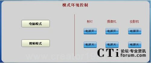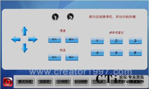在業(yè)務(wù)不斷攀升的同時(shí),廣東移動(dòng)公司對(duì)培訓(xùn)直播室也進(jìn)行了進(jìn)一步的提升,采用了CREATOR快捷的中控系統(tǒng)和矩陣系列產(chǎn)品,其中,中控設(shè)備是CREATOR快捷PGMII型高端中央控制可編程主機(jī),通過(guò)無(wú)線(xiàn)真彩觸摸屏ST-7600C作為控制媒介,主要控制了矩陣、投影機(jī)、DVD、攝像機(jī)等外圍設(shè)備,對(duì)整個(gè)會(huì)議室實(shí)現(xiàn)有線(xiàn)全智能人性化控制。通過(guò)對(duì)矩陣進(jìn)行控制切換信道,實(shí)現(xiàn)了多個(gè)電腦會(huì)議信號(hào)的快速轉(zhuǎn)換和AV信號(hào)的切換。矩陣采用了8*4的RGB矩陣和8*4的AV矩陣,可以方便的對(duì)電腦信號(hào)和AV信號(hào)進(jìn)行簡(jiǎn)單的切換。通過(guò)紅外發(fā)射棒對(duì)DVD和攝像機(jī)進(jìn)行控制,體現(xiàn)了多媒體控制系統(tǒng)的優(yōu)越性,本系統(tǒng)還通過(guò)攝像跟蹤的原理來(lái)實(shí)現(xiàn)教室直播的錄制。