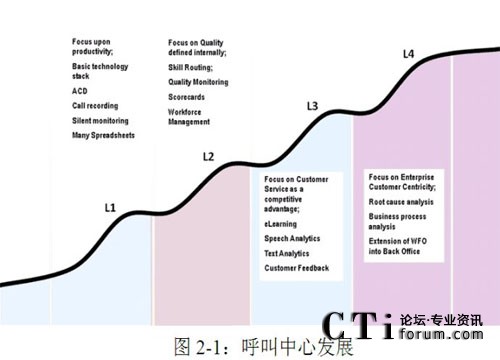 在現(xiàn)實中,還存在零程度的呼叫中心,這一點并沒有體現(xiàn)在呼叫中心發(fā)展路線圖上。零程度的呼叫中心就是那些在運營過程中并沒有很好地認(rèn)識到自己角色以及對自己未來的發(fā)展毫無計劃的呼叫中心。