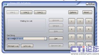 最后,交卷的時刻到了,我們的應(yīng)用到底能不能用呢?讓我們來測試一下。打開Prophecy自帶的SIP Phone,如圖4所示,給sip:vxml@127.0.0.1撥號。當(dāng)我們聽到揚(yáng)聲器傳來“Welcome