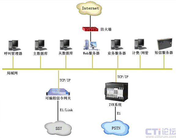 可編程信令網(wǎng)關(guān): 通過E1接入SS7信令網(wǎng),專門負(fù)責(zé)七號信令的處理;