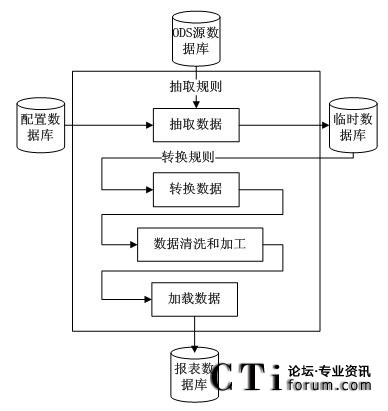 在ETL服務將抽取數(shù)據(jù)存儲到臨時數(shù)據(jù)庫后,再根據(jù)一定的轉換規(guī)則,對抽取的數(shù)據(jù)進行轉換。數(shù)據(jù)轉換完成后再對其進行一些必要的處理,清除那些不正確的,不完整的數(shù)據(jù),再對數(shù)據(jù)的格式等進行加工,最后加載到報表數(shù)據(jù)庫中。