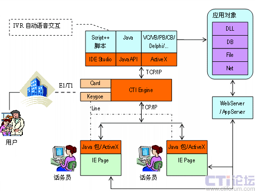IVR部分,編寫(xiě)Script++腳本程序或VC/VB/Delphi/PB/Java應(yīng)用程序控制電路的接續(xù)以及放音、錄音收碼、轉(zhuǎn)移等。