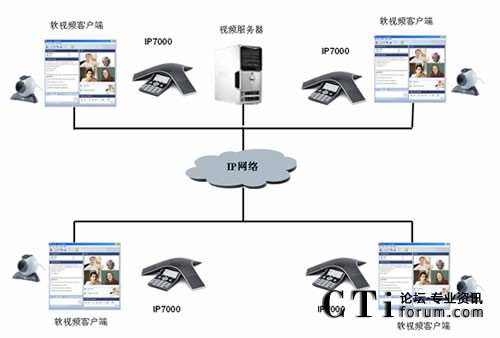 用戶現(xiàn)階段采用V2軟件視頻會(huì)議系統(tǒng),但現(xiàn)有的設(shè)備無法解決大型會(huì)議室的聲音處理問題。故新增PolycomSoundStation IP 7000音頻會(huì)議終端,并通過Polycom專有的計(jì)算機(jī)呼叫工具包使其與PC機(jī)相連,解決V2的軟件視頻會(huì)議系統(tǒng)大型會(huì)議室的聲音處理問題。