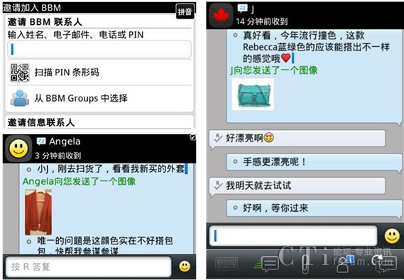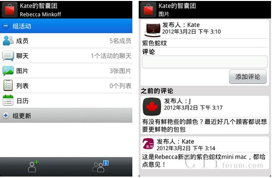 凱特周手袋為能迎合中國消費者的品位需求,在引進獨立設(shè)計師品牌的手袋時,都要充分吸取分布于國內(nèi)各地的導(dǎo)購人員的建議,這就形成了Kate極其信賴的智囊團。然而,智囊團的應(yīng)用卻極大的受到地域限制:當(dāng)Kate在美國決定是否引進某款手袋時,在北京的小J、在上海的小Q以及在深圳的小M很難及時的加入到討論中。直到她們?nèi)渴褂昧撕谳悄苁謾C和服務(wù),其中包括的一款即時通訊工具BlackBerry Messenger(BBM)為智囊團發(fā)揮作用提供了便利的通訊條件。BBM支持不同國家運營商的黑莓用戶自由的互相添加為好友、聊天、分享圖片,其群組功能還支持分享語音文件、日歷和列表等。