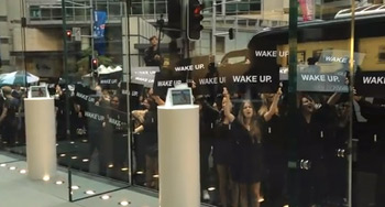 澳大利亞當(dāng)?shù)孛襟w上周報(bào)道,位于悉尼市的蘋果零售店外有一大群人聚集在一起,高舉口號(hào)并大喊著“wake up”(醒醒吧),呼吁人們反對(duì)蘋果產(chǎn)品。