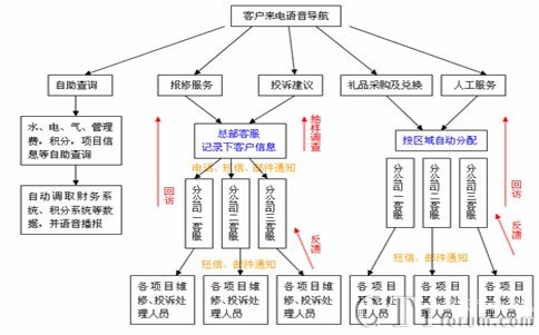 報修投訴、采購、人工咨詢及其他服務按統(tǒng)一的內(nèi)部流程處理,由各所屬項目座席受理后以短信或郵件的方式通知到各流程處理人員,處理完畢后反饋給項目座席,項目座席回訪并詢問服務滿意度,總部座席或管理座席隨機抽樣驗證。處理過程超過一定的期限將定時報送給相關管理人員。這一流程不僅確保收到了客戶的真實感受,更對服務的及時性、規(guī)范性作了監(jiān)督,將大大提升XX物業(yè)對客戶的服務水平。