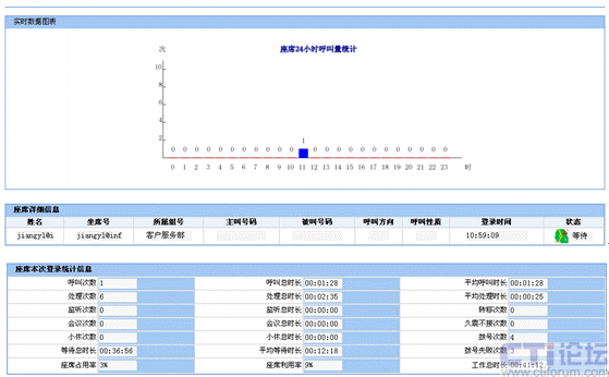 客戶撥打企業(yè)對(duì)外聯(lián)系號(hào)碼4007072008,在聽(tīng)到語(yǔ)音提示“歡迎致電。。。。。。,技術(shù)支持按3。。。。。。”的時(shí)候,既可以按3,將電話分配到項(xiàng)目部的最適合這個(gè)工作的人的手機(jī)上來(lái)完成項(xiàng)目支持工作,也可以直接撥8123將電話指定分配到小河的手機(jī)上,讓工程師小河來(lái)完成項(xiàng)目支持工作。這樣一來(lái),不管公司的人員在哪里,客戶只要撥打公司的總機(jī)號(hào)碼,就可以找到人員為其提供服務(wù),同時(shí),所有的通話,都在系統(tǒng)的管理和控制之內(nèi)。下圖是對(duì)應(yīng)的呼叫監(jiān)控的圖表,可以實(shí)時(shí)看到員工的工作狀態(tài):