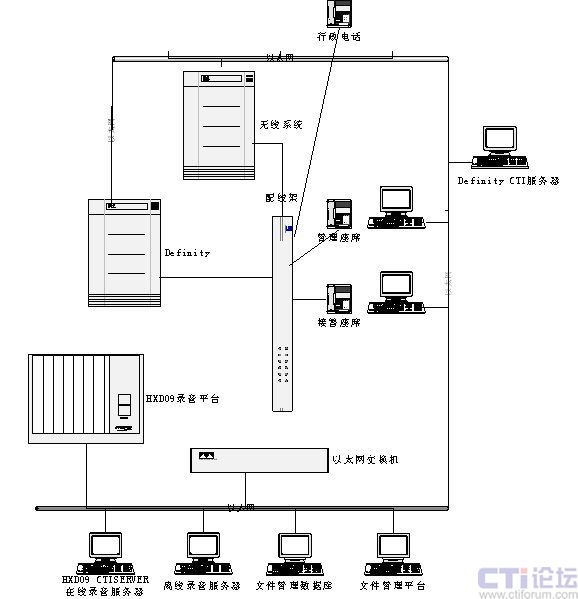 - HXD09 CTI服務器(在線錄音服務器):HXD09交換機系統(tǒng)服務器,開發(fā)平臺。完成系統(tǒng)部分控制,在線錄音等功能。