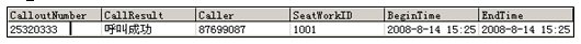 | 工號(hào) | 登陸時(shí)間 | 退出時(shí)間 | 呼入次數(shù) | 接通次數(shù) | 平均振鈴時(shí)長 | 平均通話時(shí)長 | 登陸總時(shí)長 | 振鈴總時(shí)長 | 準(zhǔn)備總時(shí)長 | 通話總時(shí)長 | 其它工作時(shí)長 | 事后整理時(shí)長 | 分機(jī)號(hào)碼 |