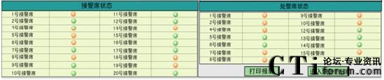 監(jiān)督臺顯示所有接處警坐席的工作狀態(tài),并用不同的顏色標(biāo)示不同的狀態(tài)。