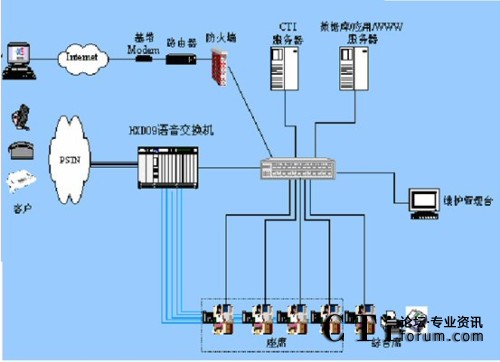 坐席:座席話機采用數(shù)字話機,帶有耳機,并配有錄音端口;座席電腦采用PC微機運行坐席軟件和人工坐席業(yè)務系統(tǒng)。