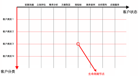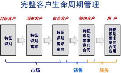 對(duì)客戶生命周期的明確定義是按照客戶生命周期規(guī)則開(kāi)展工作的前提。對(duì)客戶生命周期的定義會(huì)因?yàn)樗幮袠I(yè),以及相應(yīng)的業(yè)務(wù)特點(diǎn)的不同而有所區(qū)別。對(duì)復(fù)雜銷售業(yè)務(wù)模式的企業(yè)來(lái)講說(shuō),通常將客戶生命周期分為:初期溝通、立項(xiàng)評(píng)估、需求分析、方案制定、招投標(biāo)、商務(wù)談判、合同簽約、系統(tǒng)安裝調(diào)試、后期服務(wù)等多個(gè)階段。