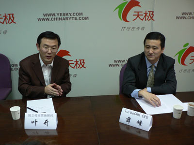 主持人:剖析行業(yè)發(fā)展趨勢,體察企業(yè)e化需求,各位網(wǎng)友下午好,感謝大家關(guān)注本期的e領(lǐng)袖對話。自2002年開始,CRM在中國取得了快速的發(fā)展,但在人們欣慰的同時還有一個現(xiàn)實讓CRM的概念可能人盡皆知,但CRM的理念卻遠(yuǎn)沒有深入人心。另外,最近一頓時間,在領(lǐng)域內(nèi)舉足輕重人物的言行以及一些知名CRM企業(yè)的變數(shù),讓人們對CRM的未來有了各種各樣的猜測和顧慮。那么CRM到底會有一個什么樣的未來,CRM為會帶給中國的企業(yè)用戶一個什么樣的未來,今天我們對話請到的是在CRM領(lǐng)域相當(dāng)資深的兩位嘉賓,看看他們會給我們一個什么樣的答案。今天這個話題引起了網(wǎng)友濃厚的興趣,在進(jìn)來之前很多網(wǎng)友已經(jīng)提出了問題,今天會把網(wǎng)友的問題結(jié)合我們話題一起進(jìn)行,請大家隨時關(guān)注,首先介紹一下今天來到對話的兩位嘉賓。一位是TurboCRMCEO薛峰。這位是獨立咨詢實施顧問葉開老師。首先歡迎兩位到來,今天話題可能跟之前不同,之前會了我們話題,隨后結(jié)合我們網(wǎng)友問題來聊。但是今天網(wǎng)友的問題和今天的主題比較切合,所以就網(wǎng)友問題和我們話題結(jié)合起來進(jìn)行,今天把首發(fā)交給網(wǎng)友,Turbo算是國內(nèi)最大的嗎?先請葉老師回答一下。