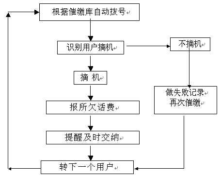 。。使用本系統(tǒng)后的催繳方式:計(jì)算機(jī)到了合適催繳的時(shí)間,會(huì)自動(dòng)撥打手機(jī)或聯(lián)系電話進(jìn)行話費(fèi)催繳,如:“尊敬的用戶您好,我是移動(dòng)客戶服務(wù)中心,首先提醒您的是本次通話為免費(fèi)通話,F(xiàn)在您的手機(jī)已經(jīng)欠費(fèi),欠費(fèi)金額為158.6元,請您速到各移動(dòng)營業(yè)廳和銀行網(wǎng)點(diǎn)交費(fèi),以免影響您的正常使用,謝謝!”,這里有幾個(gè)問題需要重視: