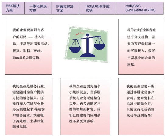 HollyC6支持的業(yè)務(wù)類型包括:客戶服務(wù)中心、咨詢熱線、電子商務(wù)中心、服務(wù)受理中心、預(yù)訂中心、電話營(yíng)銷中心、技術(shù)支持中心等。