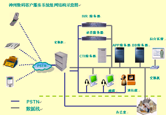 除了在線銷售方式外,神州數(shù)碼還采取了和各大銀行合作的方法,采用直復營銷的模式銷售其產(chǎn)品。隨著業(yè)務(wù)量的不斷增長,電話呼入訂單及咨詢、查詢、投訴等業(yè)務(wù)日趨漸多,為提高企業(yè)品牌形象,給客戶提供更好更快的優(yōu)質(zhì)服務(wù),神州數(shù)碼需要為各合作銀行提供個性化的接入,實現(xiàn)資源合理整合,提高整體工作效率。因此,迫切需要建立一套完整的呼叫中心客戶服務(wù)系統(tǒng),通過呼叫中心系統(tǒng)的建立,來實現(xiàn)電話、傳真、電子郵件、短信、語音留言等多渠道的接入,以進行服務(wù)請求受理、業(yè)務(wù)訂單處理,達到方便快捷為客戶服務(wù)的目的。神州數(shù)碼于選擇了HOLLYCRM(合力金橋軟件)公司為其建設(shè)了呼叫中心,采用的是HollyC6