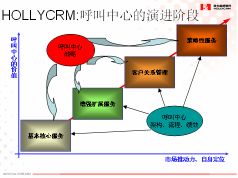 其次,我們認(rèn)為企業(yè)呼叫中心的建設(shè)不可能一次到位,而是一個持續(xù)改進(jìn)和不斷完善的過程。企業(yè)建設(shè)呼叫中心將是一個分階段分步驟的建設(shè)過程,將在其規(guī)劃的呼叫中心戰(zhàn)略的指引下和呼叫中心架構(gòu)、流程和績效的支撐上會經(jīng)歷基本核心服務(wù)、增強(qiáng)擴(kuò)展服務(wù)、客戶關(guān)系管理和策略性服務(wù)等幾個主要的階段,這就需要前期做好整體規(guī)劃,然后分階段實(shí)施,確保前期投資在后期依然可用就非常重要了,具體如下圖所示: